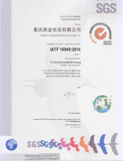 2016年12月开始策划ISO9001:2015、IATF16949:2016新版认证、转证认证工作,2017年4月邀请BSI(英标认证技术培训公司)到我司对ISO9001:2015、IATF16949:2016标准进行培训,同时进行了内审员培训,公司领导高度重视,全公司各副总、部长、经理、主管、班组长、质量和技术工程师参加了培训,有35人获得内审员资格证;培训后由各部门负责人新自修订及新增体系文件,建立了一套符合国际质量标准和汽车质量管理体系,通过对全员的宣传、培训,于2017年6月正式运行新版体系,2017年9月SGS认证公司审核专员莅临我司,在公司体系专员的陪同下、各部门负责人、全体员工的积极配合下,外审专员对我司质量管理体系进行了细致严谨的审核,ISO9001:2015、IATF16949:2016新版和转证的认证顺利通过,同时也是对我司质量管理工作的一种肯定,进一步证明了我公司产品的高质量水平。