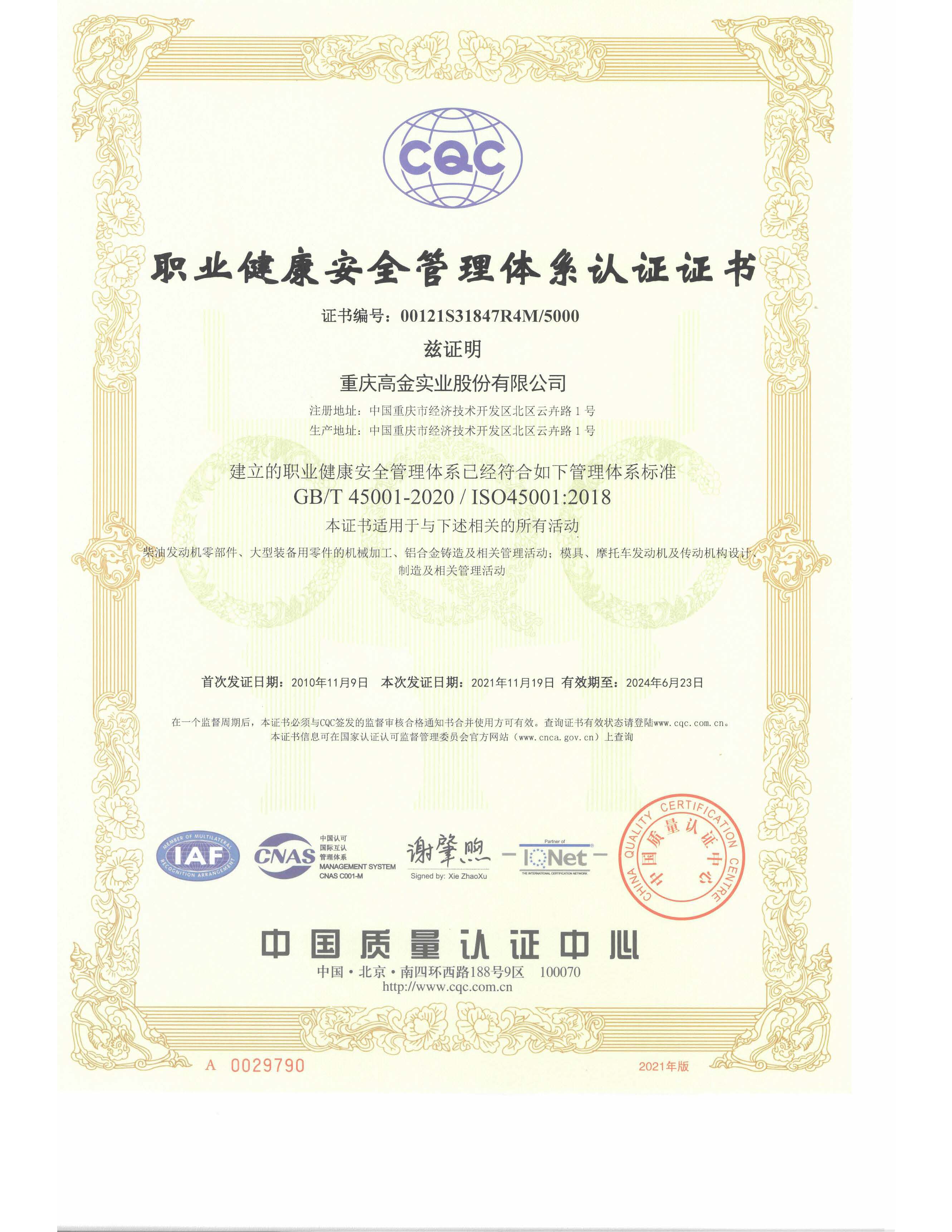 重庆高金实业股份有限公司始建于2006年,位于重庆市两江新区,距离重庆江北国际机场、重庆寸滩保税港和重庆火车北站距离均为10公里左右,公司占地面积8万余平方米,现有员工900余人,其中产品研发人员270余人。主营业务为大排量摩托车整车、摩托车发动机及传动系统的研发、制造和销售以及精密机器加工、模具设计与制造、铝合金铸造。